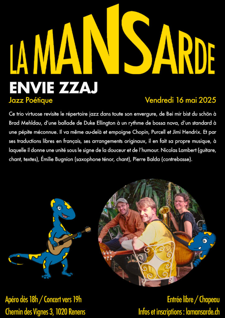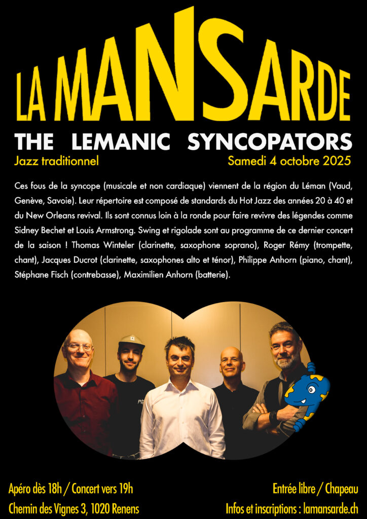 28 février 2025 : The Boss Ensemble (Julien Boss, piano, composition / Fanny Balestro, violoncelle)16 mai 2025 : EnvieZzaj (Nicolas Lambert, guitare, chant, compositions / Emilie Bugnion, saxophone ténor / Pierre Balda, contrebasse)20 juin 2025 : Natan Niddam (piano) et Vincent Schmidt (guitare)12 juillet 2025 : Béatrice Nani (chant) et Alice Businaro (piano)30 août 2025 : A.W.A & the Nomads (Ben Lana, guitare et chant / Emelyne Pannatier et Alice Auclair, chant / Vincent Schmidt, guitare et oud / Maximilien Anhorn, washboard)12 septembre 2025 : Manon Mullener (piano), Rodrigo Aravena (basse) et Lucien Mullener (batterie)4 octobre 2025 : The Lemanic Syncopators (Thomas Winteler, cl, ss / Roger Rémy, tp / Jacques Ducrot, cl, as, ts / Philippe Anhorn, p, voc / Maximilien Anhorn, d)